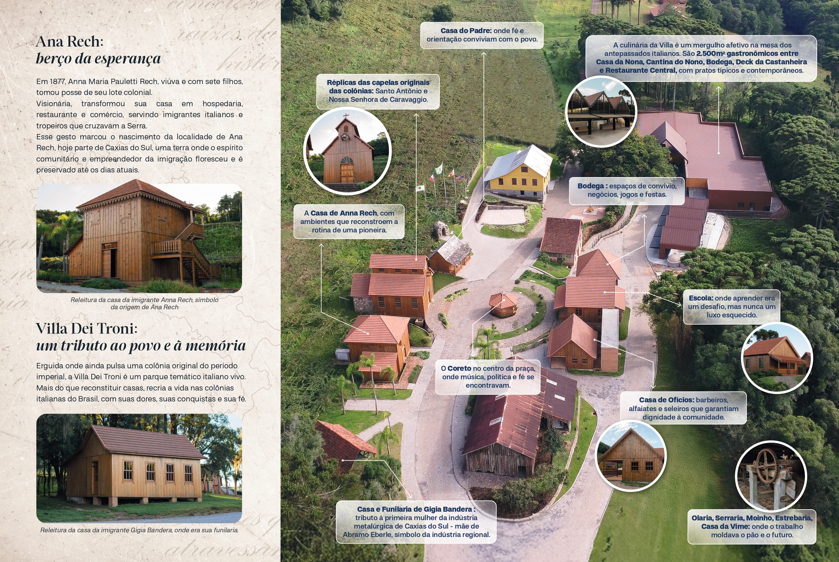 A Villa dei Troni é um atrativo turístico, histórico e cultural que resgata a vida dos imigrantes italianos e dos tropeiros por meio da arquitetura, de atrações diversificadas e de um acervo cultural rico e singular.